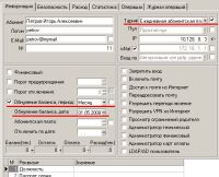 договора Порог предупреждения Порог отключения абон. плата (переопределение) Формирование