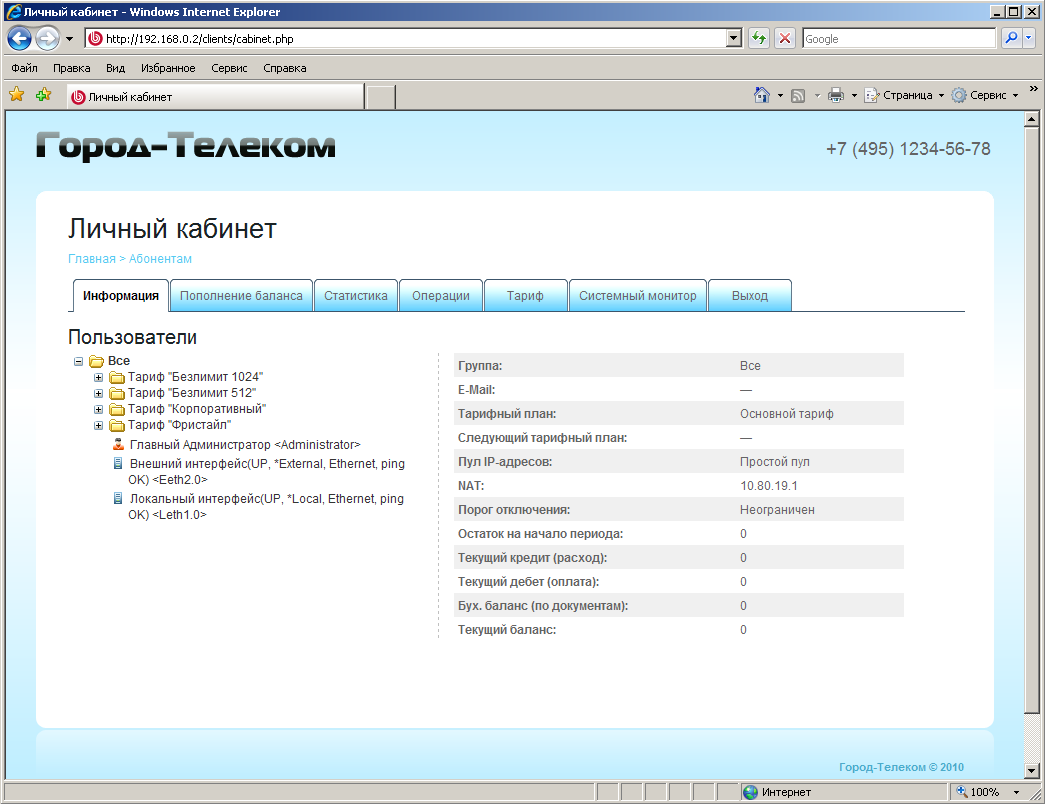 Личный кабинет пользователя