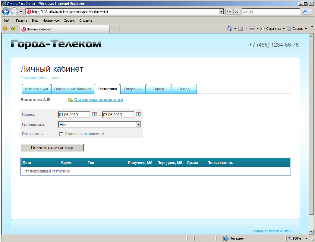 Личный кабинет пользователя