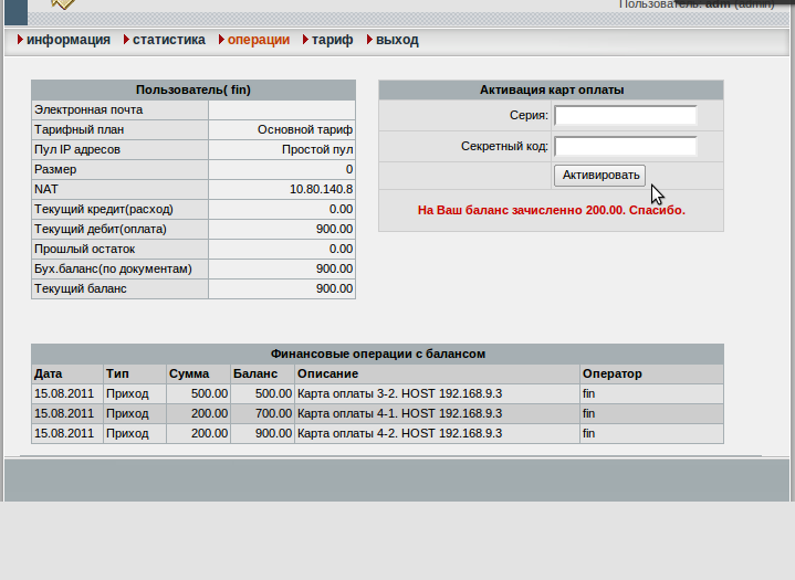 Пополнение баланса финансово-ответственных групп с помощью карт оплаты